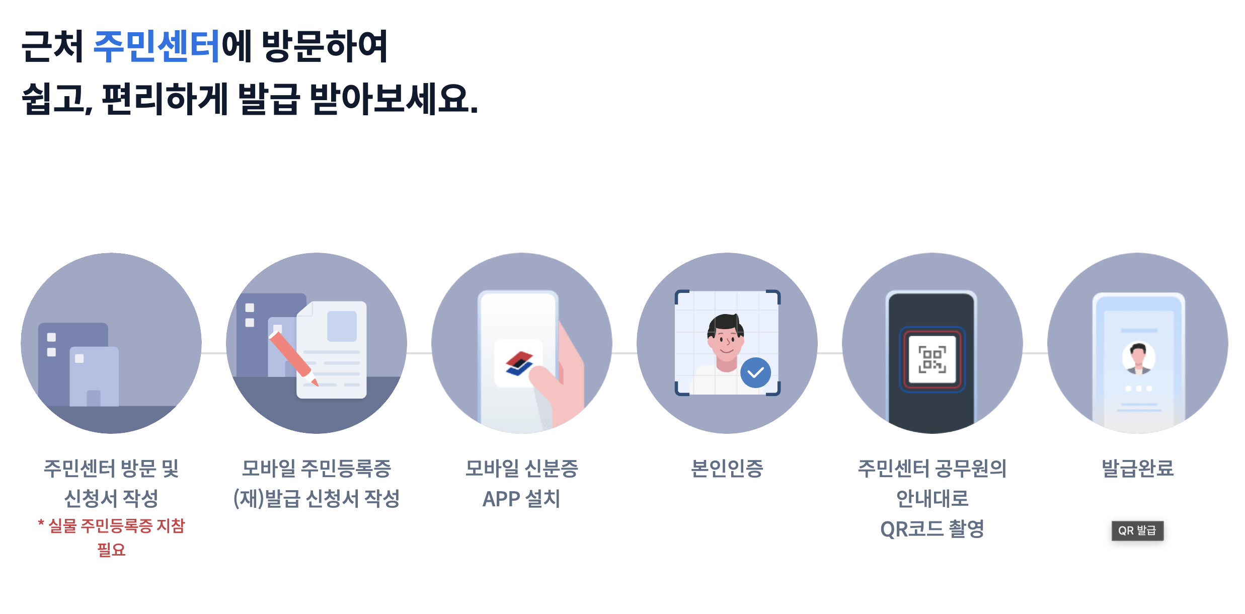 - '대한민국 모바일 신분증' 앱 설치 및 본인인증: 스마트폰에 앱을 설치하고 본인인증을 진행합니다.